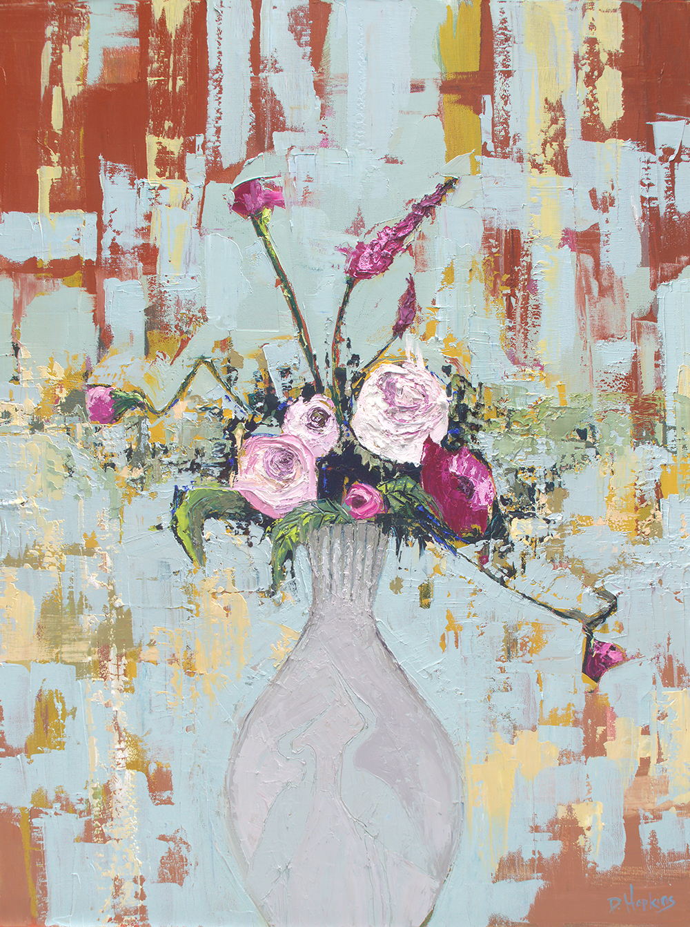 “Look at All That Has Transpired” is a 40×30 canvas that is 1.5 inches deep. It is created with oil and palette knives. The sides are painted making the painting ready to hang either on its own or with the addition of a gold floater frame.
